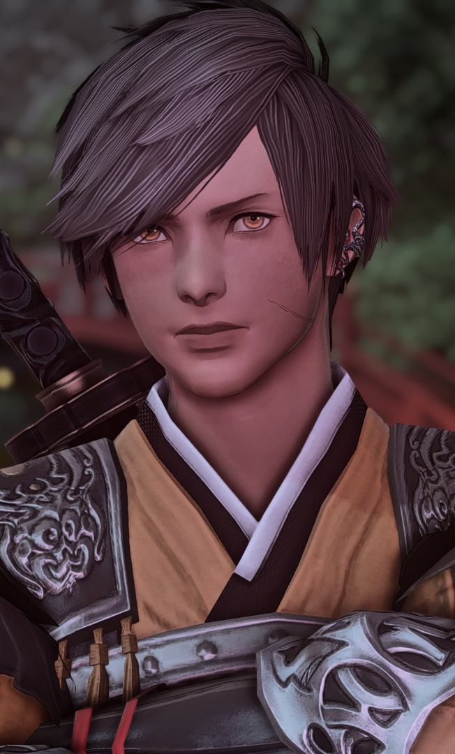 golden-eyed glower ‣ even in his youth, ieteru was always known for that moody look in his eyes. other wealthy families—especially the parents—whispered about and teased the boy for his seriousness. this wasn't the temperament of a child! where was his smile, his laughter? later into his early adulthood, ieteru had garnered a reputation as the scowling son of the soga lineage. the only crack in his stony expression took the form of a sideways scar along his left cheek: a permanent reminder of the price of disobedience.hingashi in his blood ‣ tradition and culture are inescapable parts of life in hingashi. for ieteru, dressing properly has always been a priority, as was instilled in him since a young age. status, and the appearance of such, is everything. to that end, ieteru always wears traditional far eastern garb, albeit of quite expensive quality. his personal preference is wearing hues of golds or red—colors antithetical to his otherwise dour disposition.